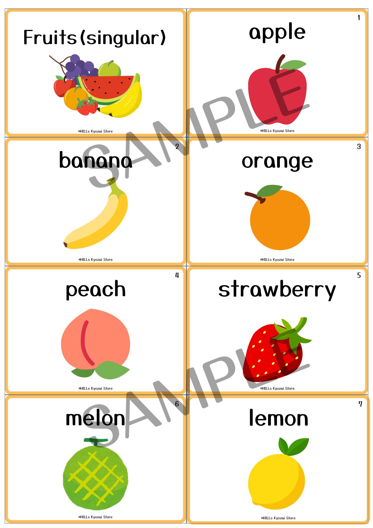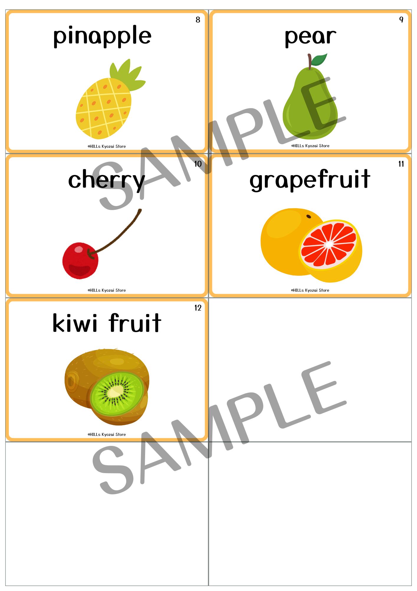 〇内容:表紙、果物12種類、一覧表の全13ページ。