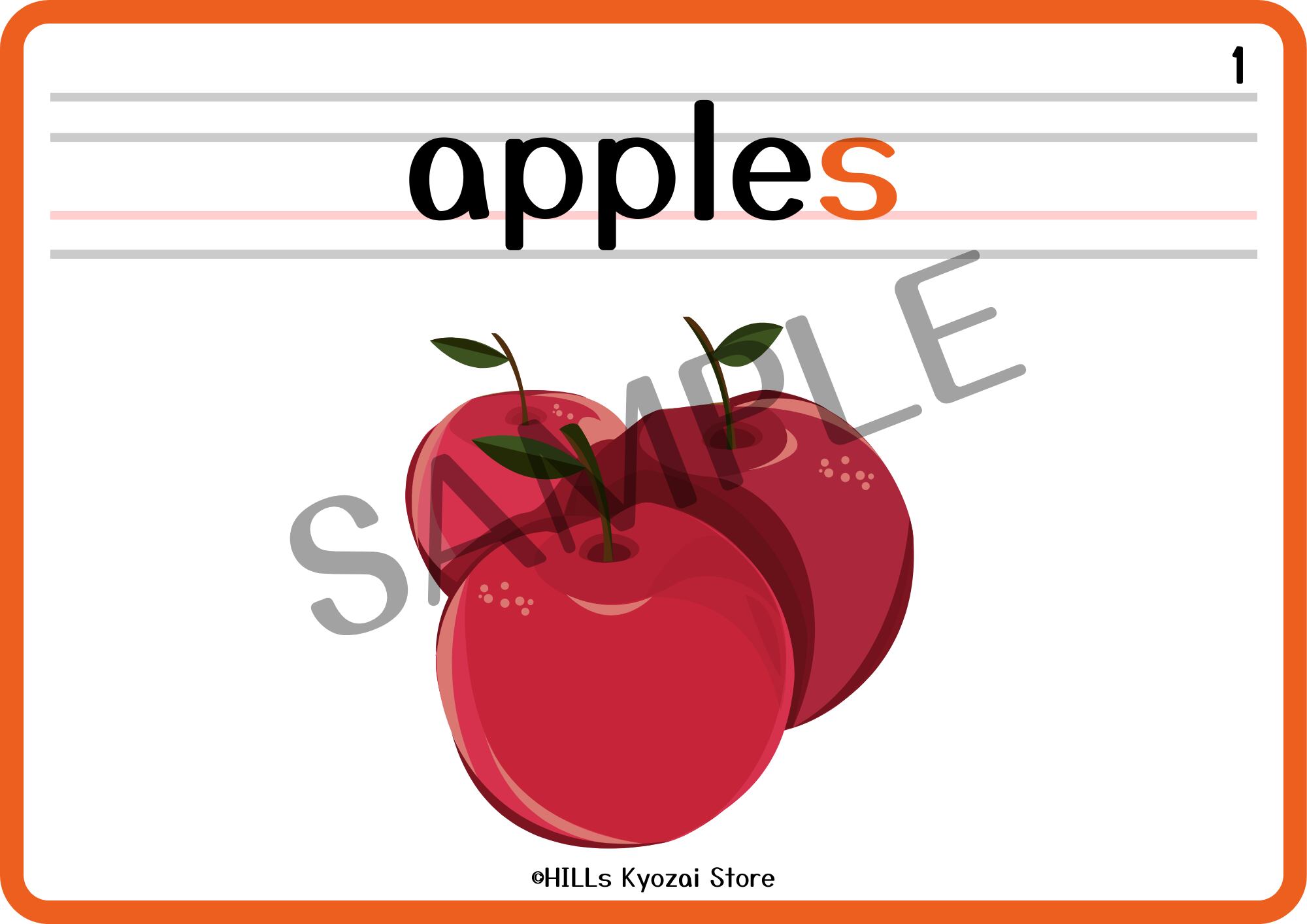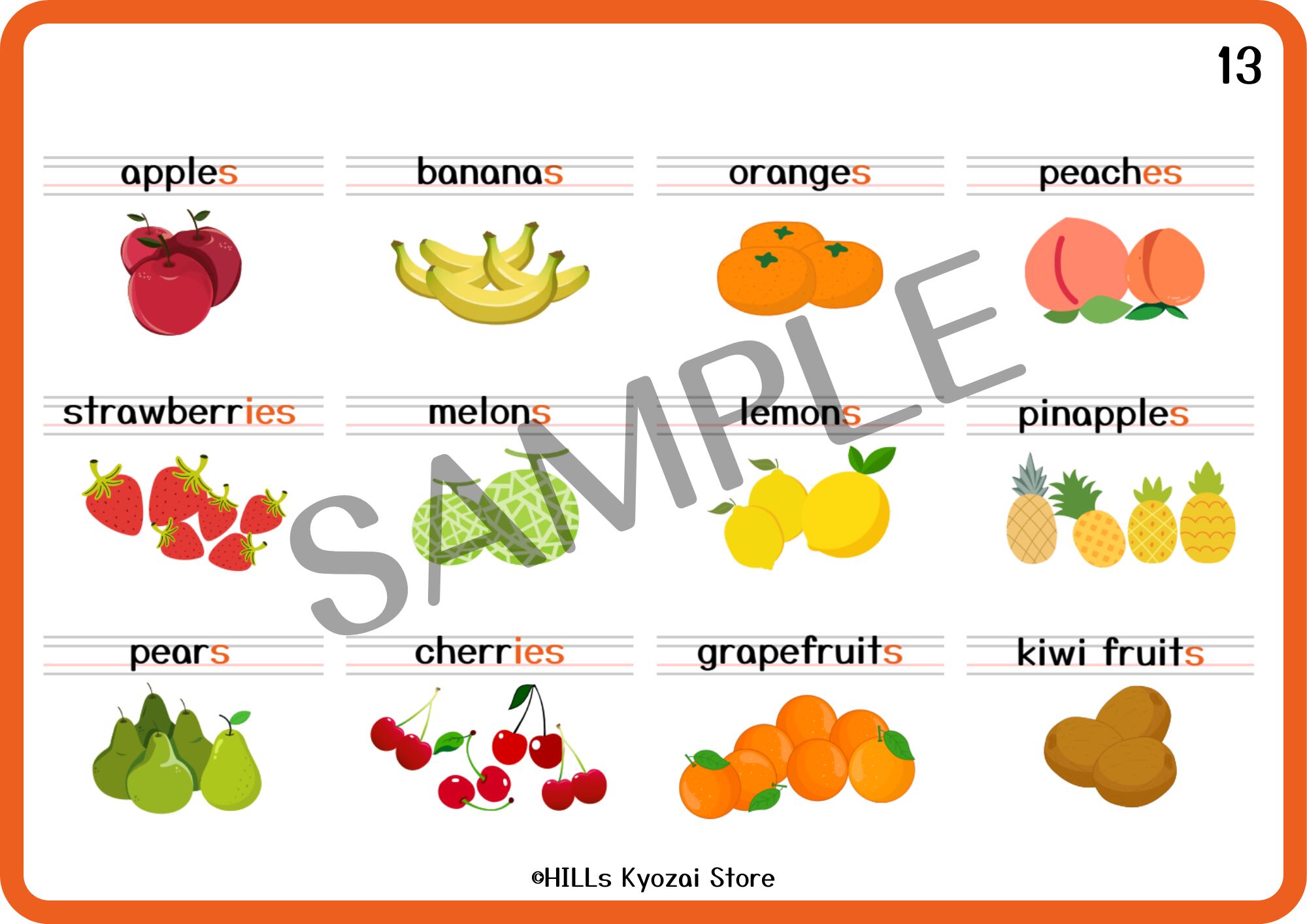 〇内容:表紙、果物(複数形)12種類、一覧表の14全ページ。