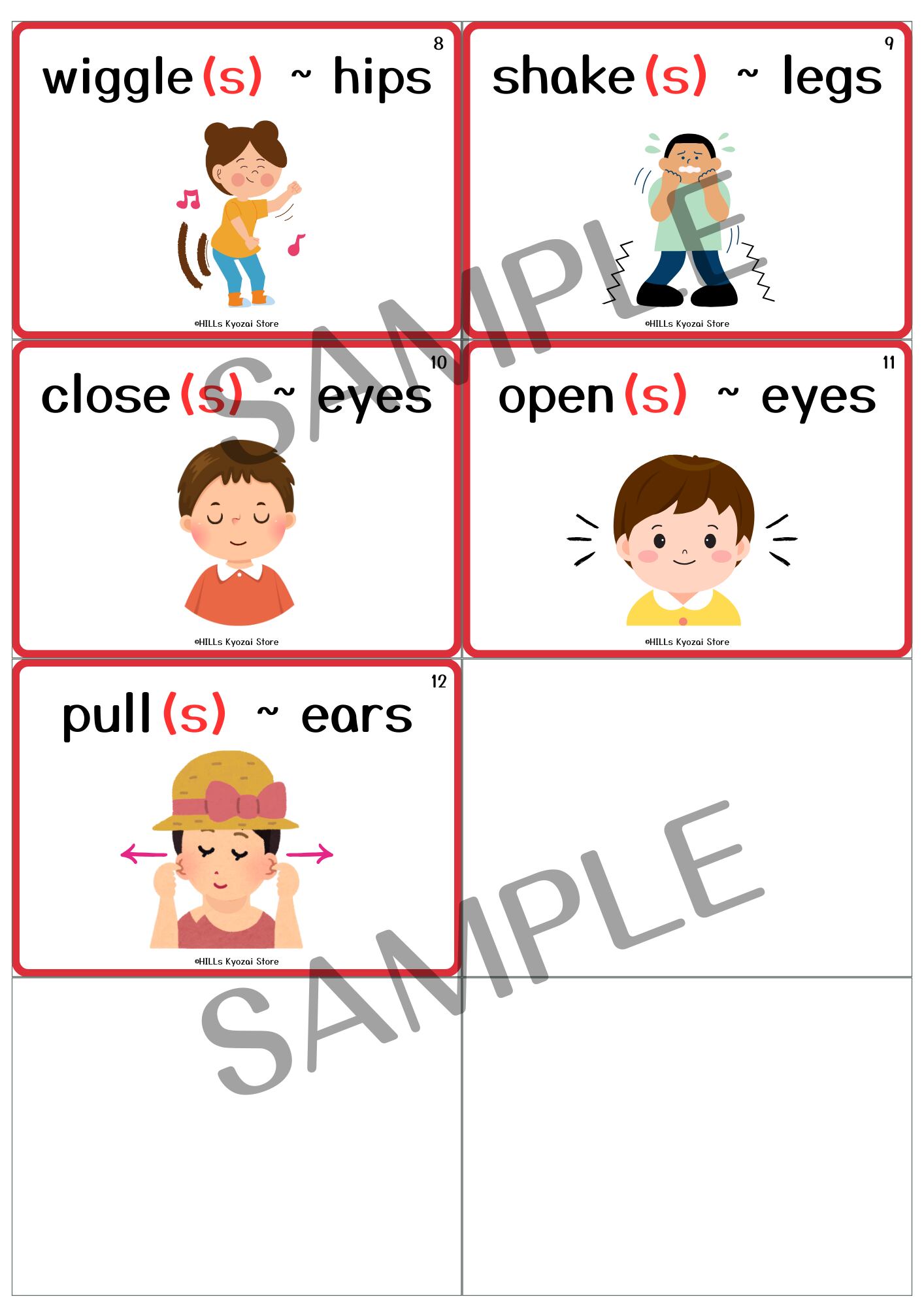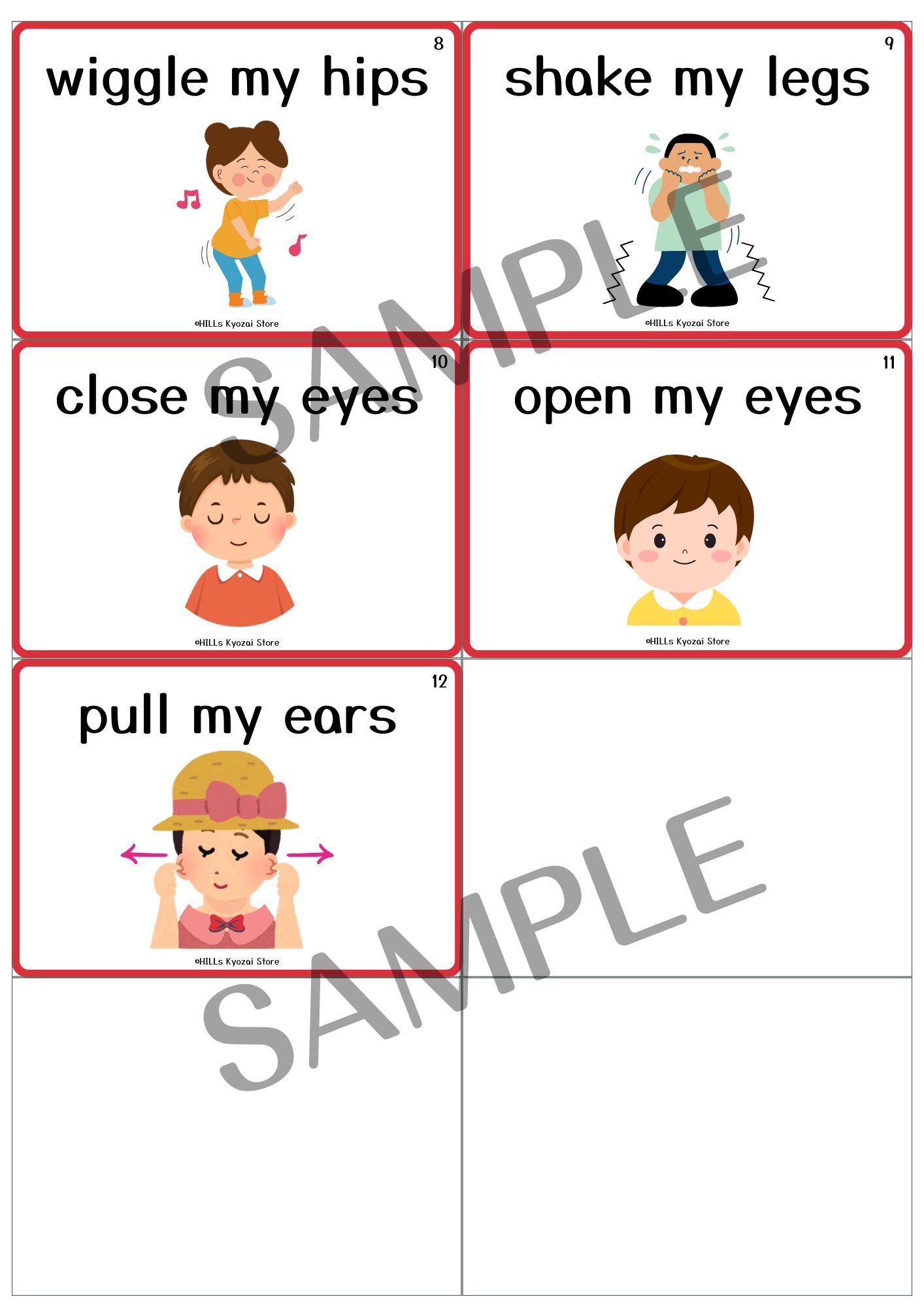 〇内容:表紙、身体の部分を使った動詞12種類、全13枚