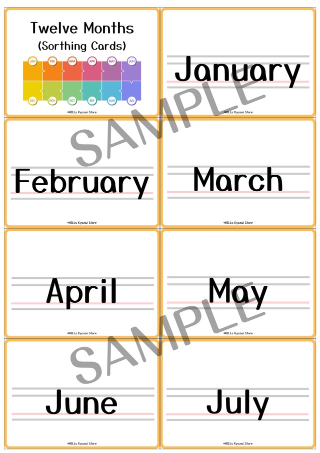 〇PDFファイル:文字を読んで並べ替えるゲーム用に制作した、敢えて絵を省いたアクティビティカードです。印刷後、線に沿って切ってご使用下さい。
