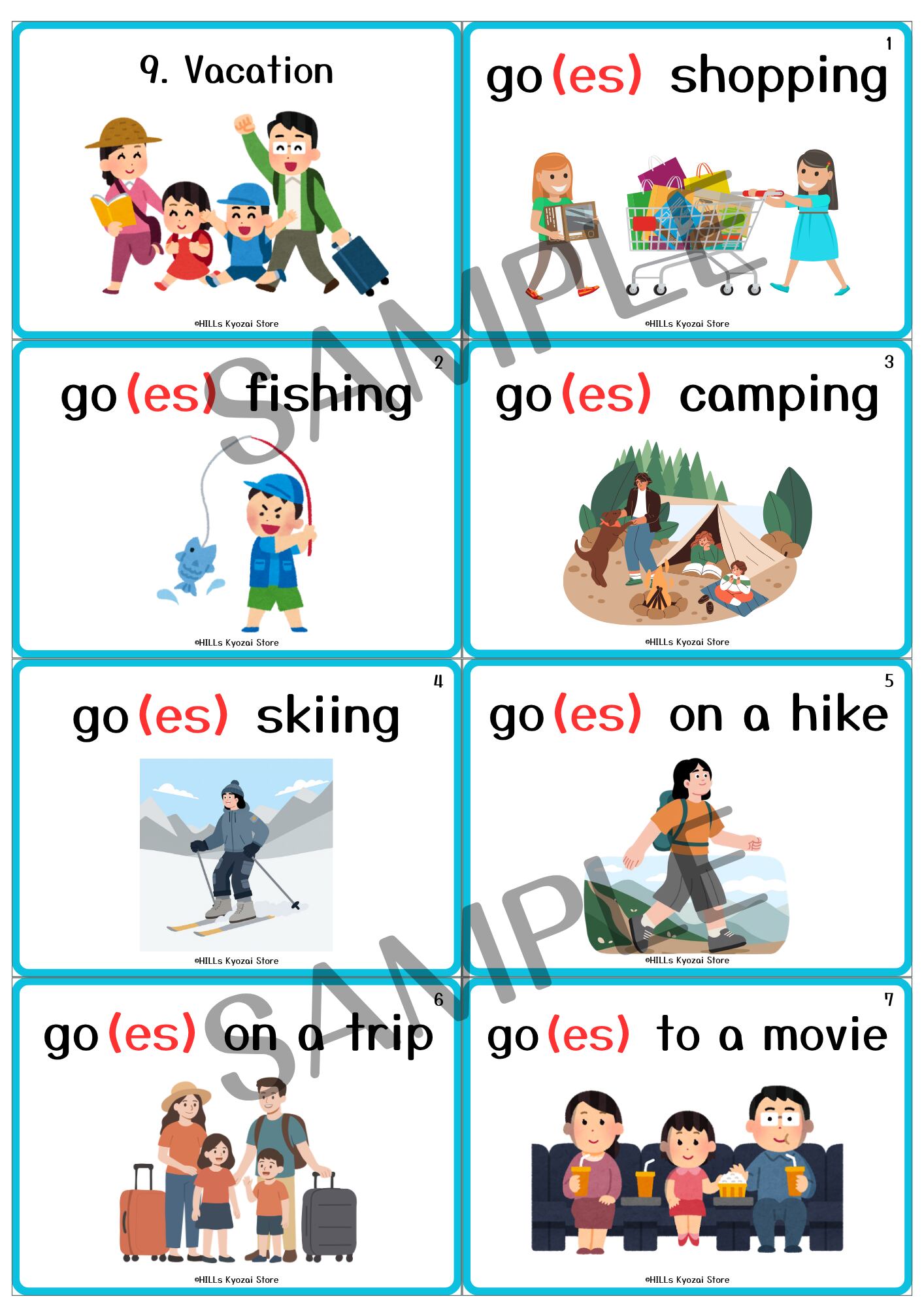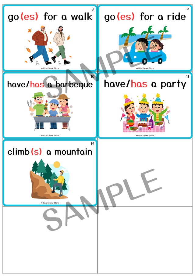 〇内容:表紙、休暇にすることの動詞12種類、全13枚