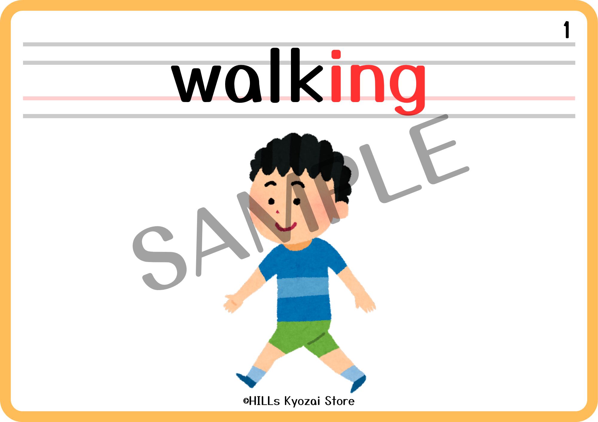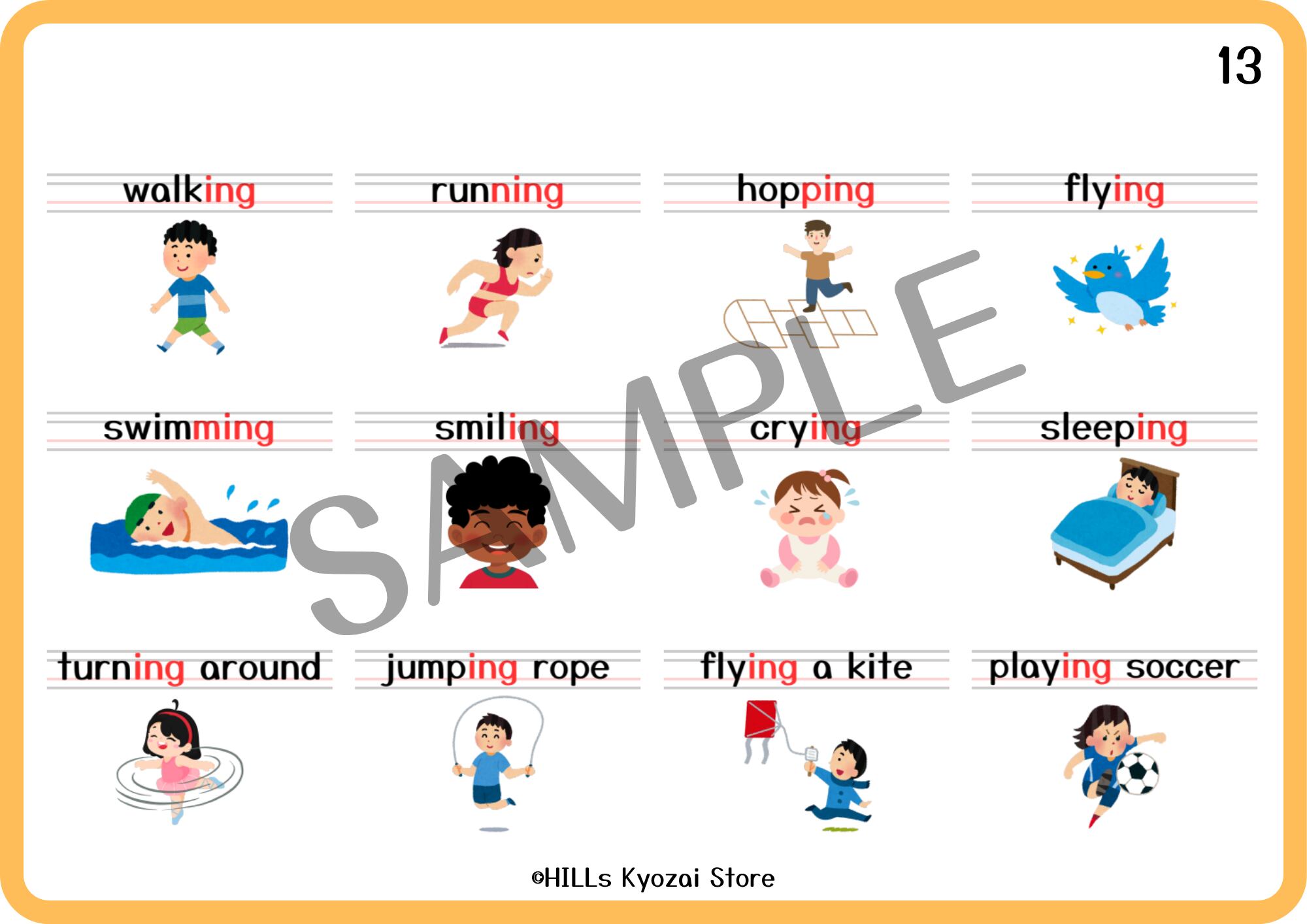 〇内容:表紙、動詞の~ing形12種類、一覧表の全14ページ。