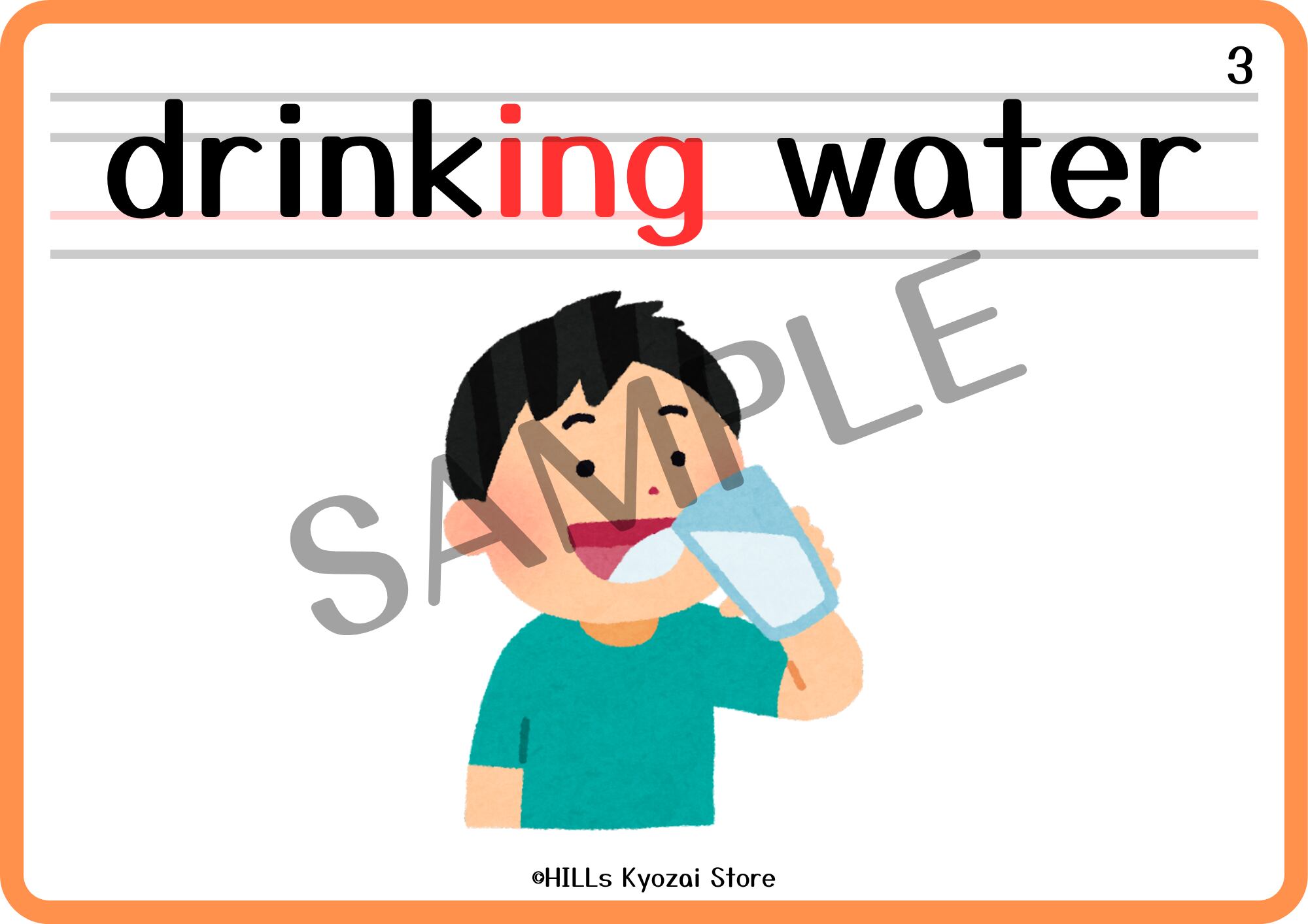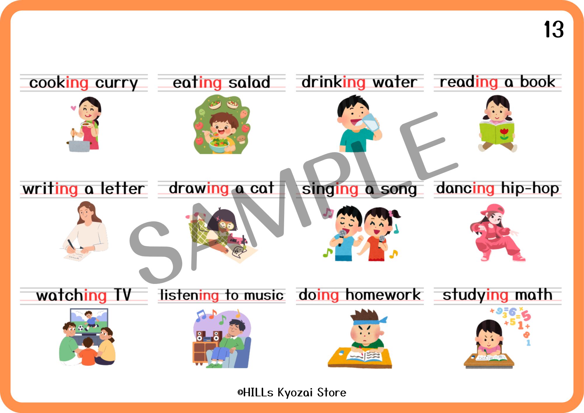 〇内容:表紙、動詞の~ing形12種類、一覧表の全14ページ。