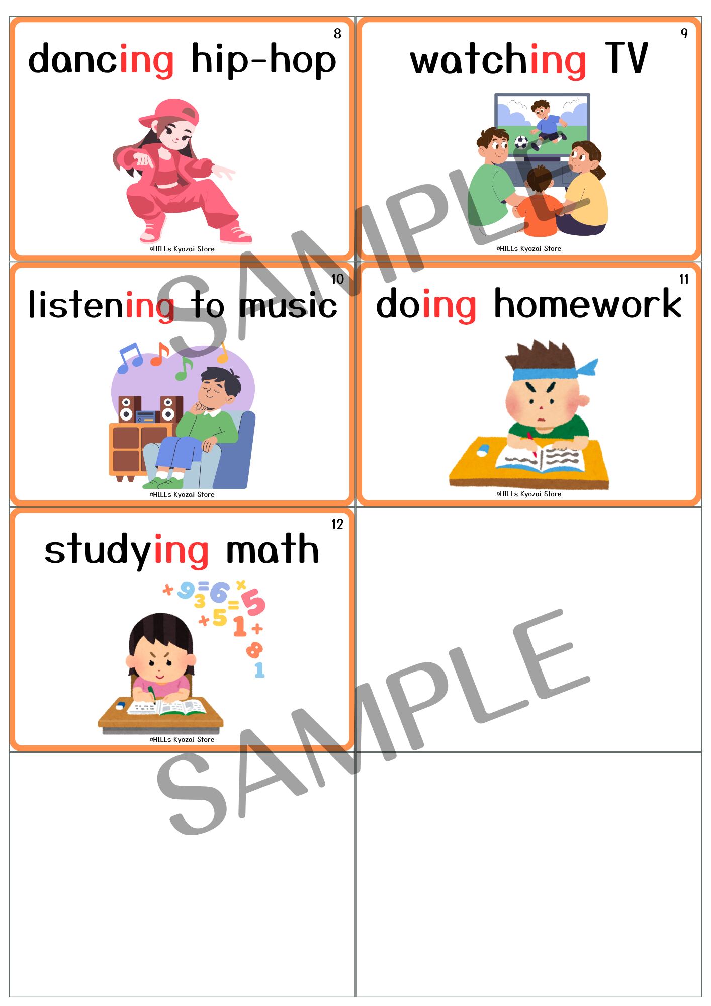 〇内容:表紙、~ing形の動詞12種類、全13枚