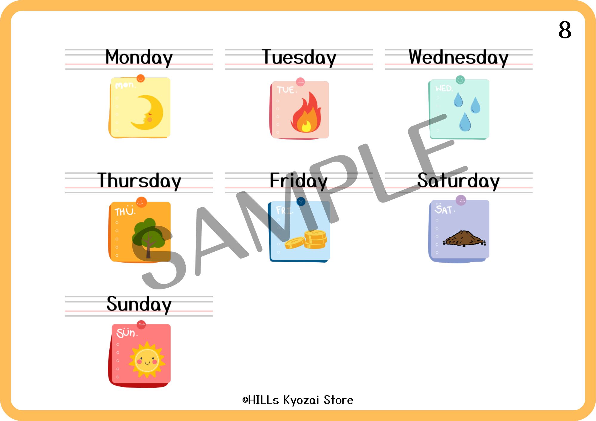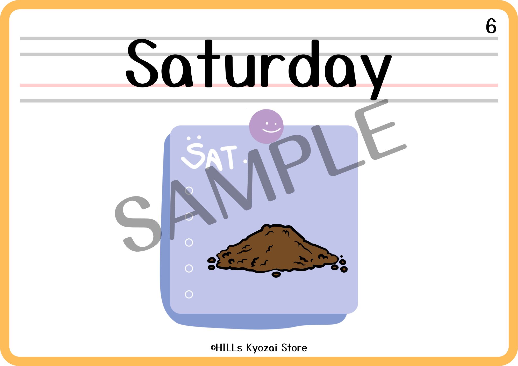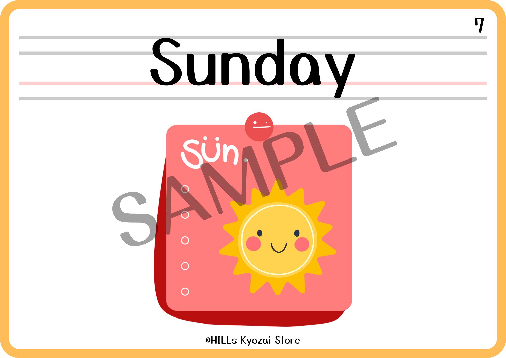 〇内容:表紙、曜日7種類、一覧表の全9ページ。