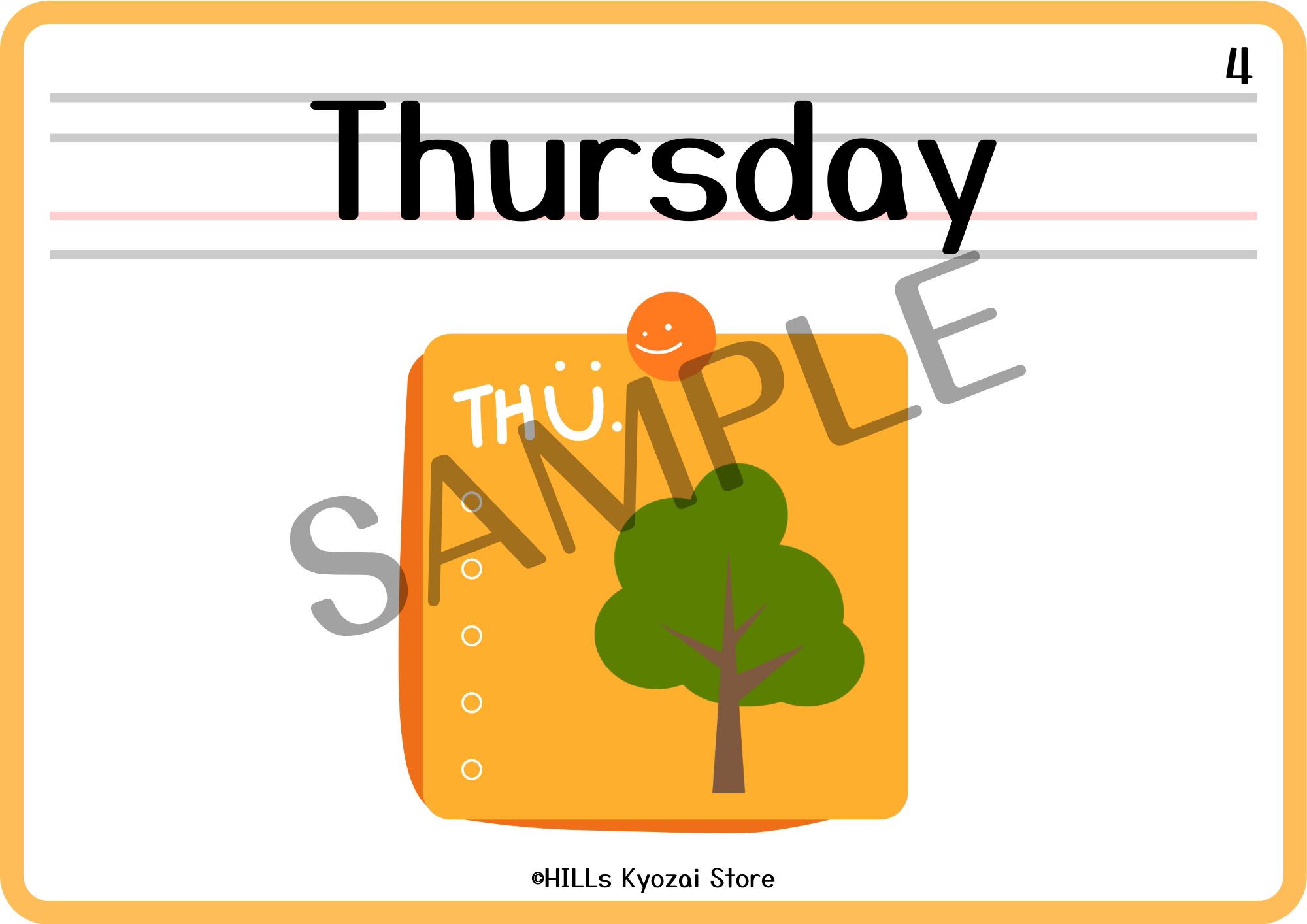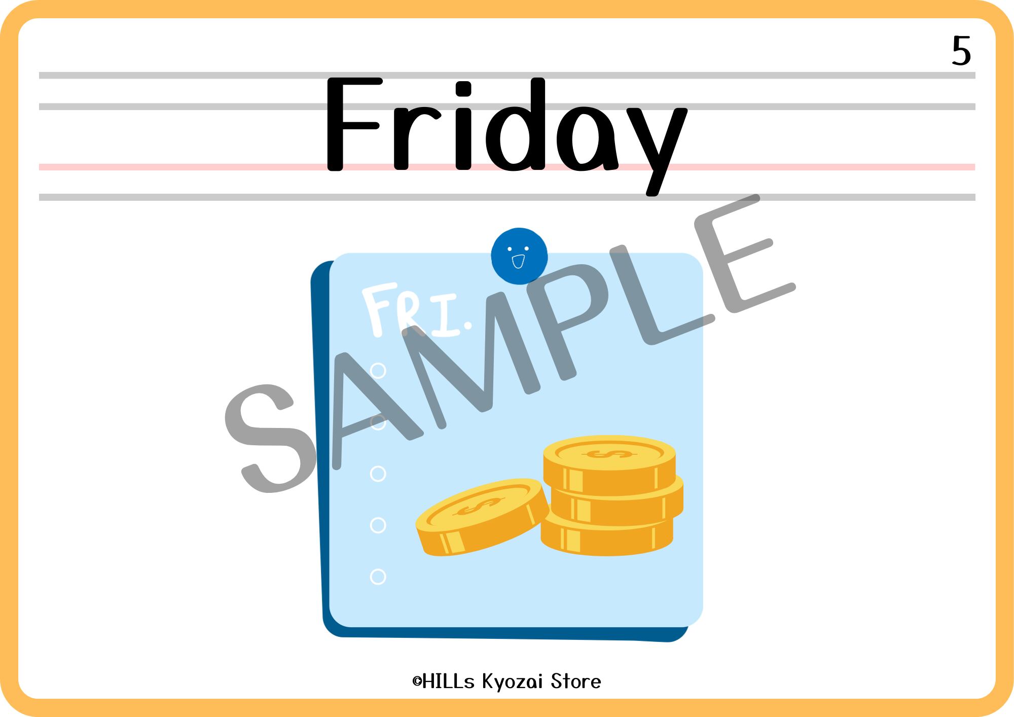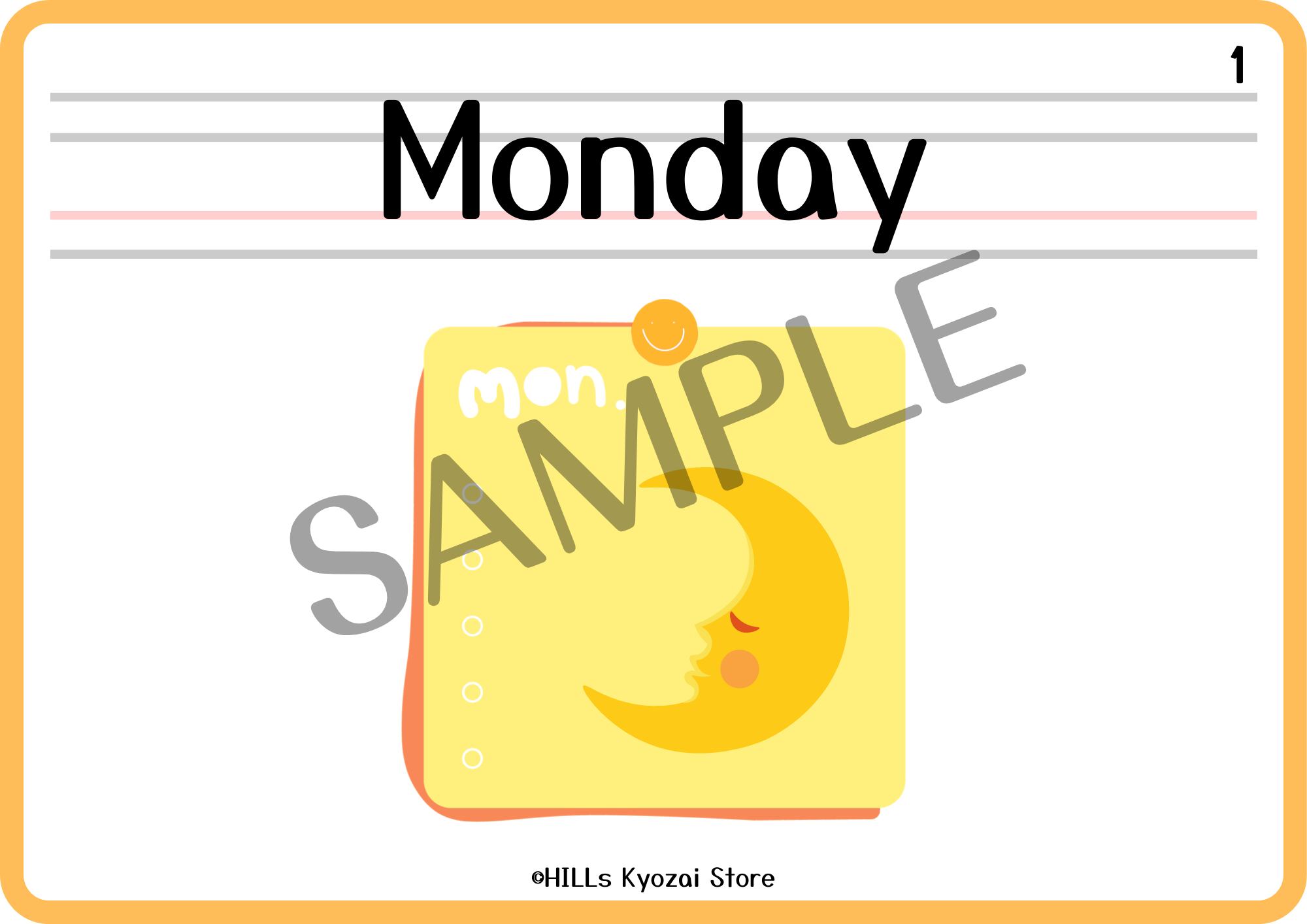 〇内容:表紙、曜日7種類、一覧表の全9ページ。